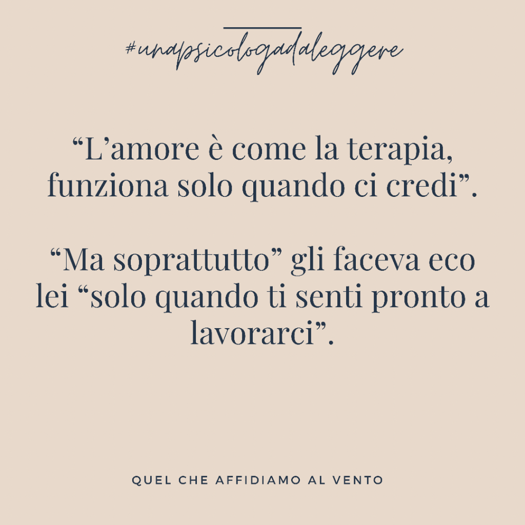 È una relazione d’amore tra chi vuole essere curato e chi si è già preso cura di sè. E funziona, funziona, solo se sentiamo di essere pronti a entrare in questa relazione e lavorarci dentro.